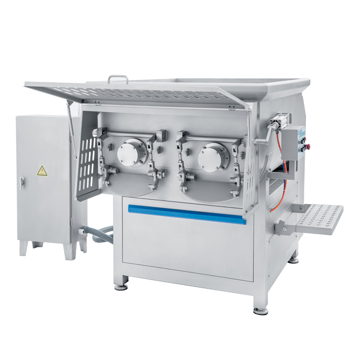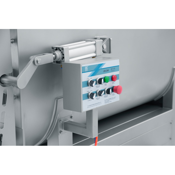 JB1200食品(pǐn)攪拌機,是我公司(sī)參照國際同類產品的特點(diǎn),同時結合我國肉(ròu)製品加工工藝特點,自行研製開發生產的的(de)新一代產品。是用於混料的必備(bèi)設備,效率高,便於操作,真正實現了物料攪拌的均勻(yún),膨脹充分,彈性好,色澤鮮豔並較大限度地提取蛋白(bái)質多種功能,適合各種工藝要求,是製作風幹腸類產品(pǐn)、粒狀、泥狀(zhuàng)混(hún)合腸類產品、丸類產品的選用設備。