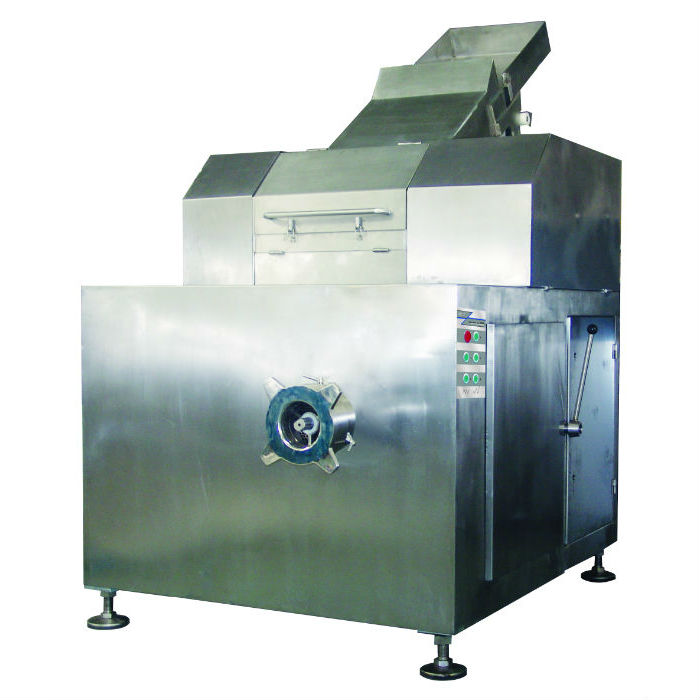 結構:進料係統、切塊係統、送料(liào)係(xì)統和絞(jiǎo)肉係統。在(zài)切塊和絞肉係統中間有強磁係統(tǒng)以防有鐵(tiě)質材料(liào)進入絞肉(ròu)機係統(tǒng)。