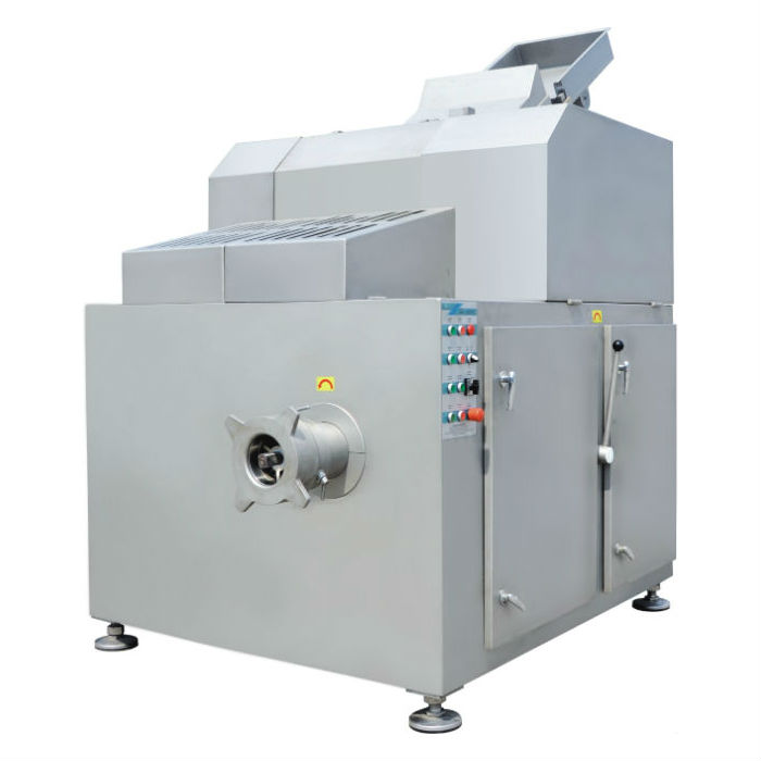 由人工(gōng)把凍好的肉塊放入提(tí)升機內,然後提升機把肉(ròu)料送入凍肉切塊外理係統,在(zài)切塊自動完成後,切(qiē)好的肉塊自動進入絞肉係統,絞肉機(jī)可根據物料的多少來由人工提前設定絞肉速(sù)度,整機隻需一人就可完(wán)成“入(rù)料、提升、切碎、絞肉”全過程。