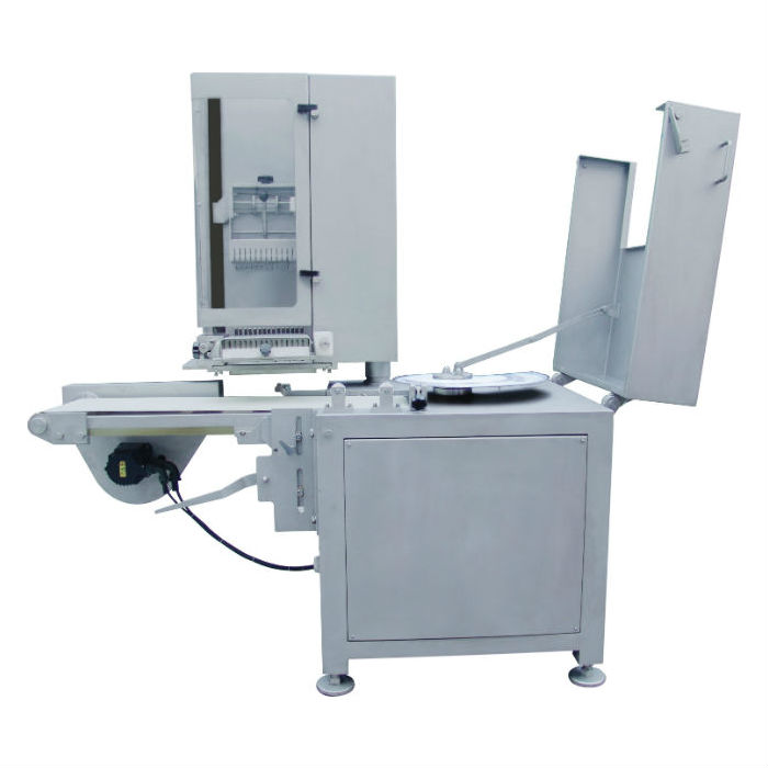 QP7470切片(piàn)分份機,具有高速切割、分份功能,可以在(zài)5-10℃、結露的環境連續工作(zuò),將-2℃至-10℃的(de)叉燒肉和原(yuán)料(liào)肉切成需要的片狀。較好的解(jiě)決了以前單靠人工分切,切割速度慢、分份不均勻,產能低下(xià),既耗費(fèi)工(gōng)時,又無法實現規模化生產的難(nán)題,大地(dì)降低生產成本(běn)、提高生產效益!