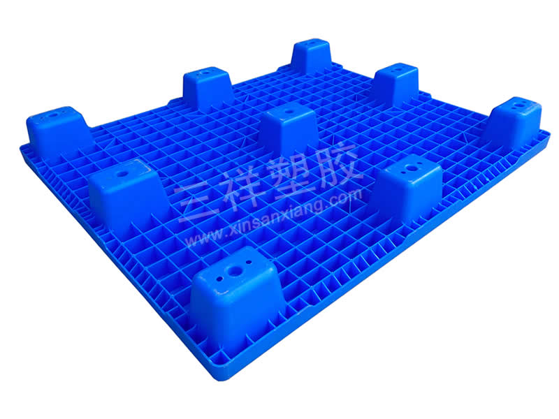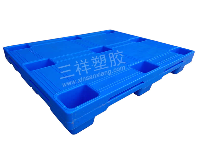 溫馨提示:此款套疊九腳平板型卡板采用全新共聚PP料生產,韌性和耐衝擊性非常(cháng)好,平板設計方便清洗,受到很多防潮功能要求較高的食品企業所喜愛。動載能力相當不錯,最大的特點就是堆(duī)碼套入非常緊密,加(jiā)高1塊加4.5CM,每100塊堆碼時隻占了5.6立方左右;為方便操作,在(zài)卡板邊緣有設計了手(shǒu)指位,防止人工操作手指被夾的風險。